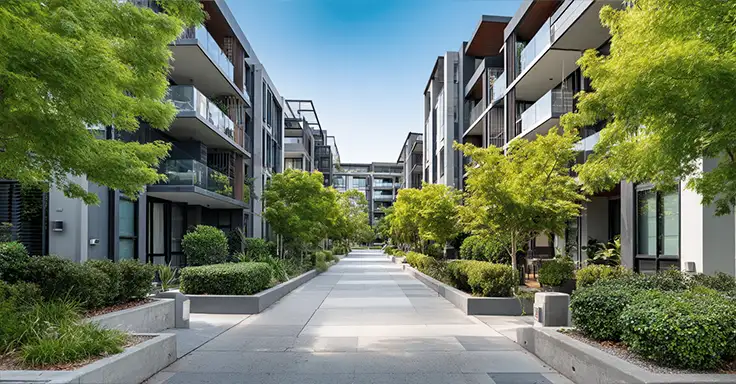 Modernes Mehrfamilienhaus mit Balkonen und Garten