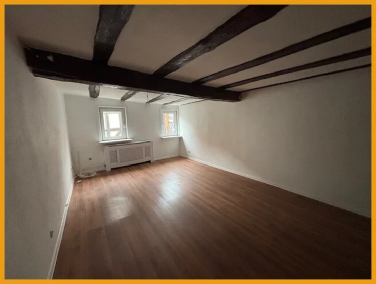 Diese Dachgeschosswohnung bietet Ihnen rund 82 m² Wohnfläche und gliedert sich auf in einen Wohnbereich mit integrierter Küche, ein Schlafzimmer, ein Büro und ein Badezimmer mit Wanne und Dusche. Im Erdgeschoss des Hauses finden Sie einen Kellerraum, der zur gemeinschaftlichen Nutzung aller Mieter dient.