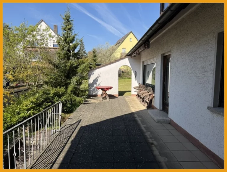 Das 1964 massiv erbaute und Ende der 70er Jahre erweiterte Wohnhaus bietet Ihnen heute im Erdgeschoss ein großes Wohnzimmer mit direktem Ausgang auf die nach Süden ausgerichtete Terrasse und in den Garten. Zudem ist dem Wohnbereich direkt ein Büro angeschlossen, dass vielseitig verwendet werden kann. Im Anbau wurde die Küche mit dem Esszimmer offen gestaltet. Auch hier haben Sie den direkten Zugang auf die Terrasse. Der Garderobenbereich, das Gäste-WC und die geräumige Diele mit angrenzendem Hauswirtschaftsraum runden das Platzangebot im Erdgeschoss ab. Zwei Schlafzimmer, das Badezimmer mit Wanne und Dusche sowie ein Zimmer mit Durchgang in einen hellen und großen Studioraum mit Balkon befinden sich im Obergeschoss. Abstell- und Lagermöglichkeiten stehen auf dem teilausgebauten Dachboden oder im Keller zur Verfügung. Ebenfalls im Keller ist eine Waschküche, der Heizungsraum, ein WC und ein kleiner Hobbyraum gegeben. Unter dem Anbau befindet sich ein Carport mit Durchfahrt in die Garage sowie ein zusätzlicher Stellplatz für ihren PKW in der Einfahrt.
