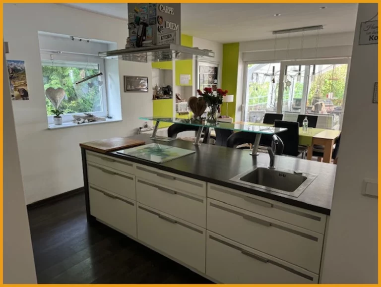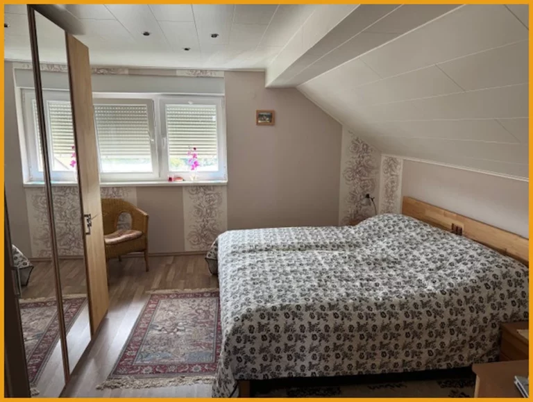 Dieses gepflegte Zweifamilienhaus, Baujahr 1962, umfasst eine beeindruckende Wohnfläche von ca. 280 m², verteilt auf drei Etagen. Im Erdgeschoss des Hauses finden Sie ein Wohnzimmer mit einem gemütlichen Holz-und Pelletofen und Ausgang über die Terrasse in den großzügig, hübsch angelegten Garten, welcher kurze Wege in den Wald bietet. Durch die großen Panoramafenster im Wohn- und Schlafzimmer können Sie den Blick ins Grüne genießen. Des Weiteren bietet diese Etage zwei Schlafzimmer, eine Küche und ein Badezimmer aus den 90er Jahren mit Dusche und WC. Das Obergeschoss gliedert sich auf in einen Wohnteil im Haupthaus und einen im Anbau. Im Haupthaus finden Sie drei Schlafzimmer und ein Badezimmer aus 2012 mit Dusche und WC. Der Anbau bietet Ihnen ein Wohn-Esszimmer, eine offene Küche, ein Badezimmer ebenfalls aus dem Jahr 2012 mit Wanne und Dusche und einen Hauswirtschaftsraum. Das Dachgeschoss verfügt über ein weiteres Schlafzimmer, ein Ankleidezimmer, ein Studio mit Balkon sowie eine Küche und ein Badezimmer. Auf der anderen Seite des Objekts befindet sich eine weitere, großzügige und ausbaufähige Dachfläche. Im Kellergeschoss des Hauses finden Sie eine Waschküche, ein Gästezimmer, einen Heizungsraum und einen Abstellraum. Für Ihren PKW stehen Ihnen drei Garagen und ca. 4 Stellplätze auf der Hoffläche zur Verfügung. Ein weiteres Highlight ist das ausbaufähige Nebengebäude, das aktuell als KFZ-Hobbywerkstatt genutzt wird und in dem 2 PKW Ihren Platz finden. Des Weiteren könnte man in der über 4 Meter hohen Halle wunderbar ein Wohnmobil unterstellen.